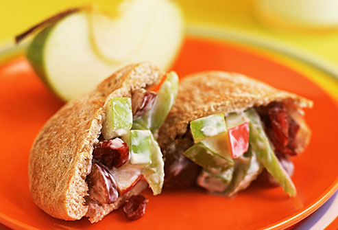 بدنبال یک قرص نان تهیه شده با غلات سبوس دار باشید. چرا که دارای پروتئین و مواد معدنی بیشتری است و عموما سالم تر از نوع آرد سفید است. نان شیر با غلات کامل را که در روغن زیتون، هوموس یا قاتینی (یک رب غنی از پروتئین ساخته شده از دانه های کنجد زمینی) ایجاد شده است را ، امتحان کنید.