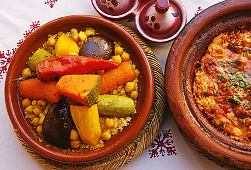 منوی مدیترانه ای بیشتر از غذاهای یونانی و ایتالیایی است. به دنبال دستور العمل های اسپانیا، ترکیه، مراکش و کشورهای دیگر بروید. غذاهایی را انتخاب کنید که به اصول اولیه توجه کنند : مقدار کمی گوشت قرمز و لبنیات پرچرب داشته باشند ،به جای ان با مقدار زیادی میوه و سبزی تازه، روغن زیتون و دانه های کامل تهیه شده باشند . این دستورالعملهای مراکشی با نخود، بامیه و ادویه جات متناسب با مشخصات منوی مدیترانه ای است.