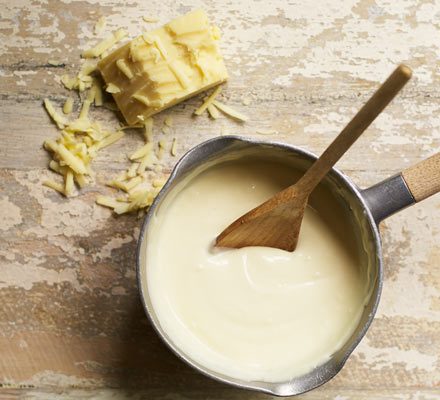سس پنیر خامه ای که از سس بشامل با پنیر چدار رنده شده تهیه می شود، ذوب شده و در سس هم زده می شود.